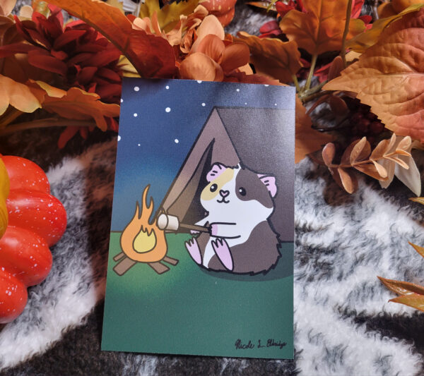 Available as an art print, folding card, and postcard. Use a post card to write a friend or family member, or maybe use a folding card as a birthday card for the guinea pig fanatic in your life, or maybe just hang an art print on your wall to bring you joy day after day.