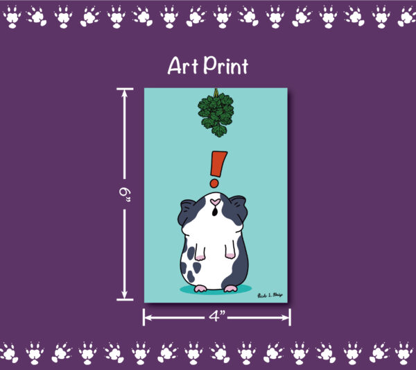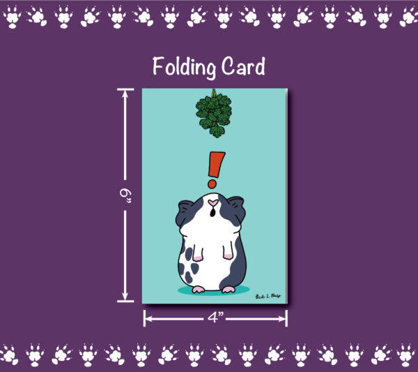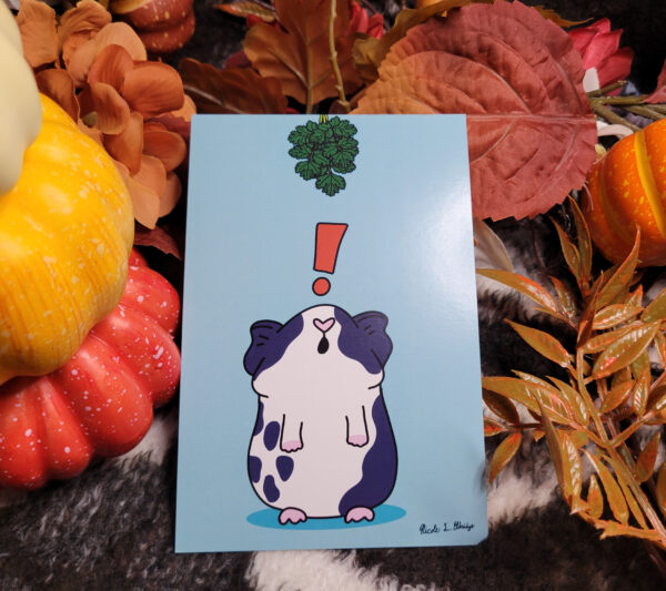 Available as an art print, folding card, and postcard. Use a post card to write a friend or family member, or maybe use a folding card as a birthday card for the guinea pig fanatic in your life, or maybe just hang an art print on your wall to bring you joy day after day.