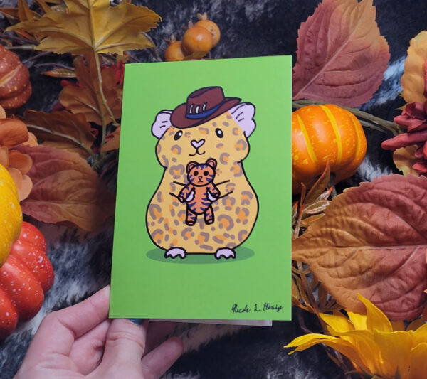 Available as an art print, folding card, and postcard. Use a post card to write a friend or family member, or maybe use a folding card as a birthday card for the guinea pig fanatic in your life, or maybe just hang an art print on your wall to bring you joy day after day.