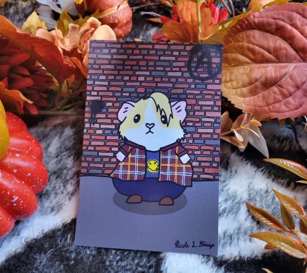 Available as an art print, folding card, and postcard. Use a post card to write a friend or family member, or maybe use a folding card as a birthday card for the guinea pig fanatic in your life, or maybe just hang an art print on your wall to bring you joy day after day.