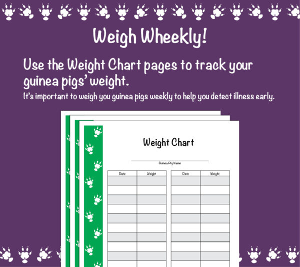 – WEIGHT CHART – Weight charts to help you track your piggies weight and make sure that they are healthy.