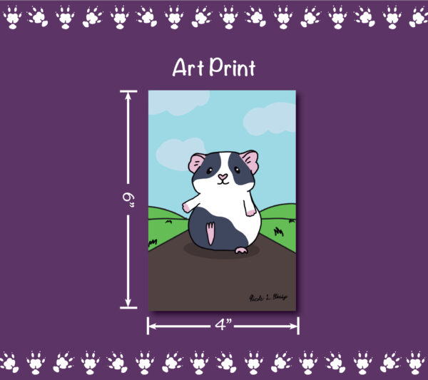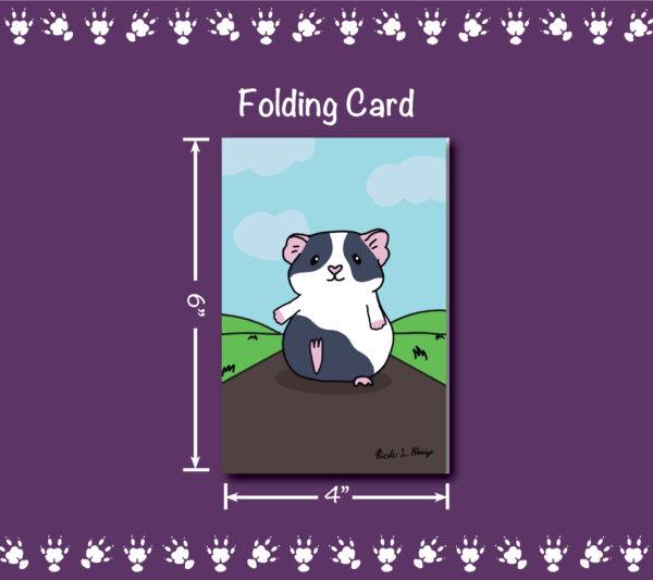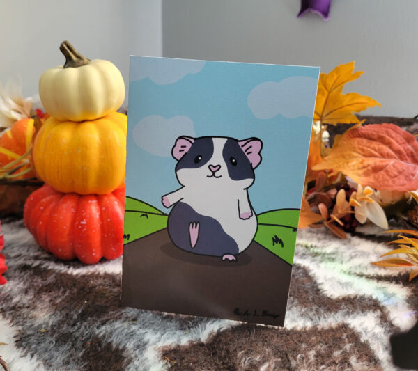 Available as an art print, folding card, and postcard. Use a post card to write a friend or family member, or maybe use a folding card as a birthday card for the guinea pig fanatic in your life, or maybe just hang an art print on your wall to bring you joy day after day.