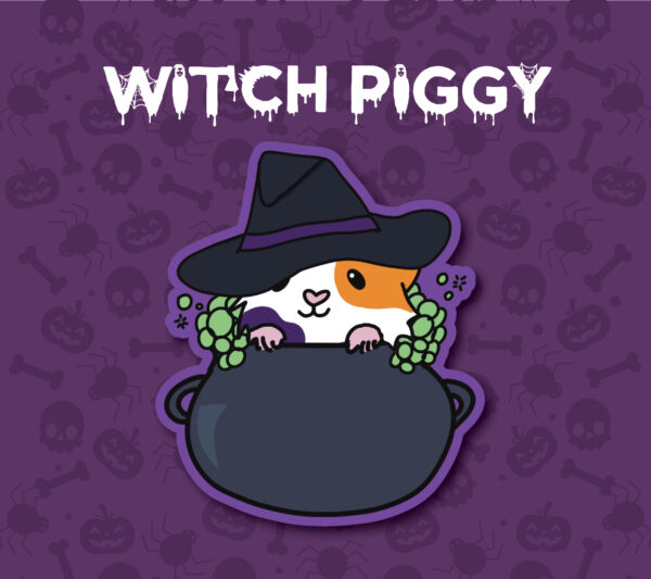 Celebrate Halloween with this adorable Witch Piggy Sticker!